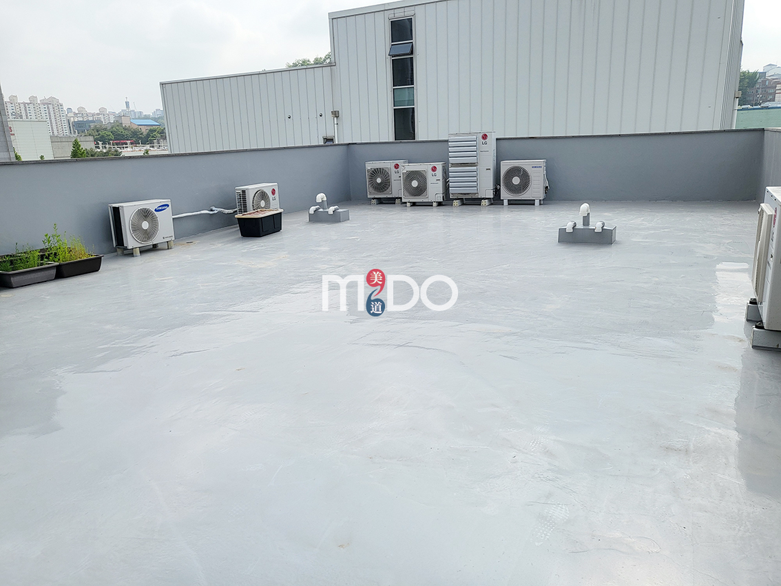 빌딩 건물 옥상 바닥에 우레탄 방수 작업이 아주 잘 되어 있습니다.